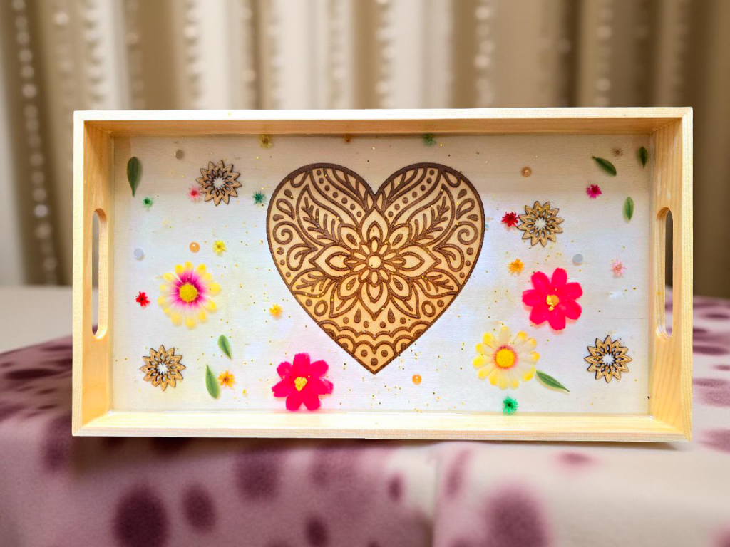 Our handcrafted resin trays are both practical and decorative. Use them to serve guests, hold cherished items, or display as art.